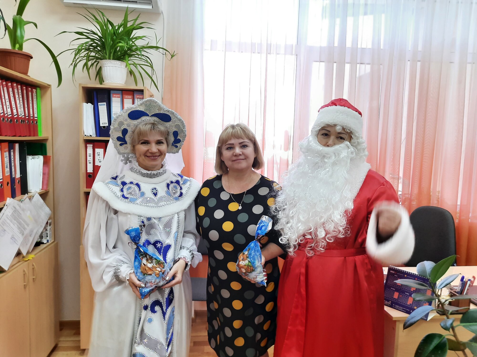 В канун Нового года членов профсоюзной организации МБДОУ № 5 "Сказка" поздравил Дед Мороз и Снегурочка, вручив членам профсоюза новогодние подарки.