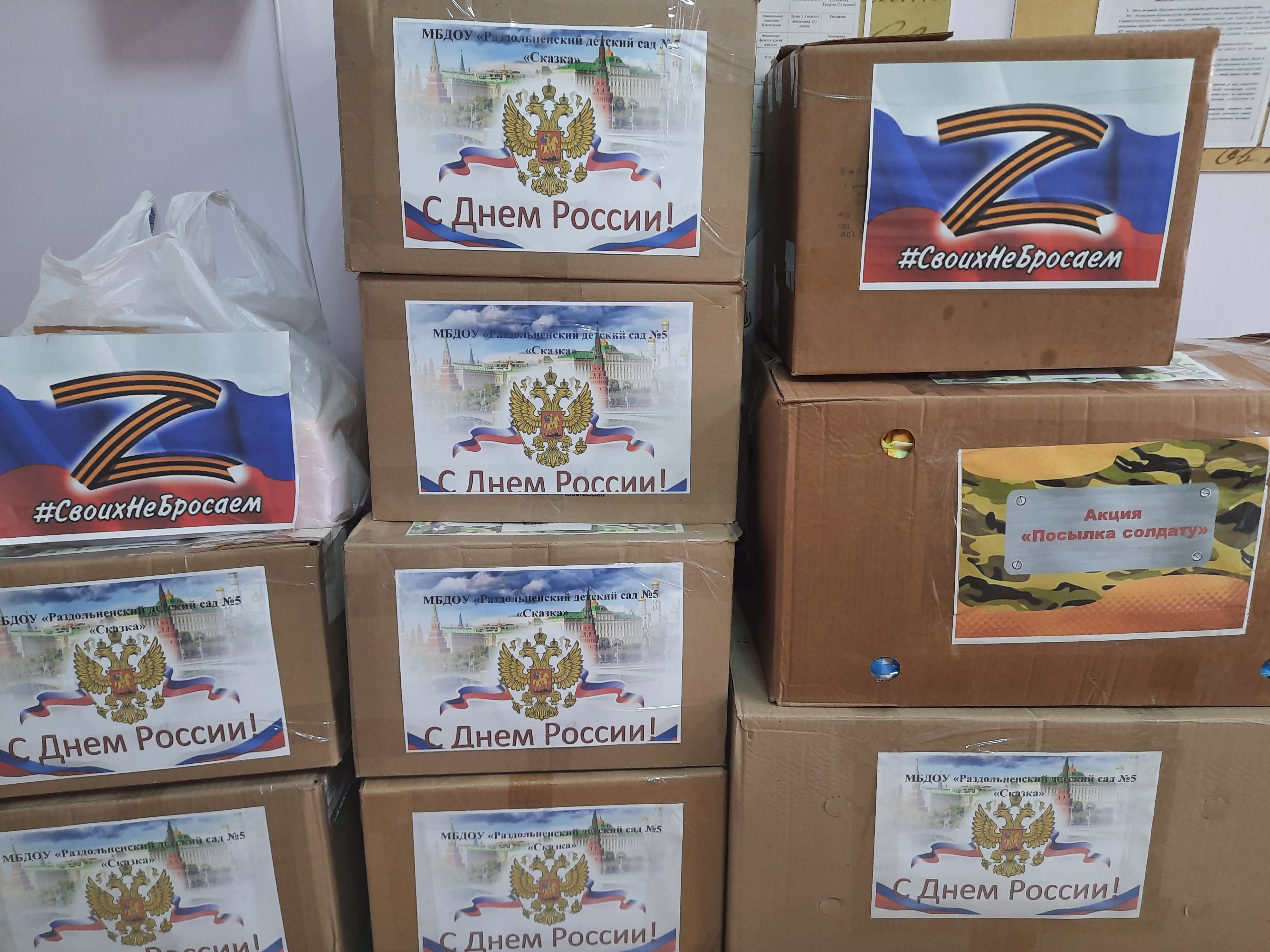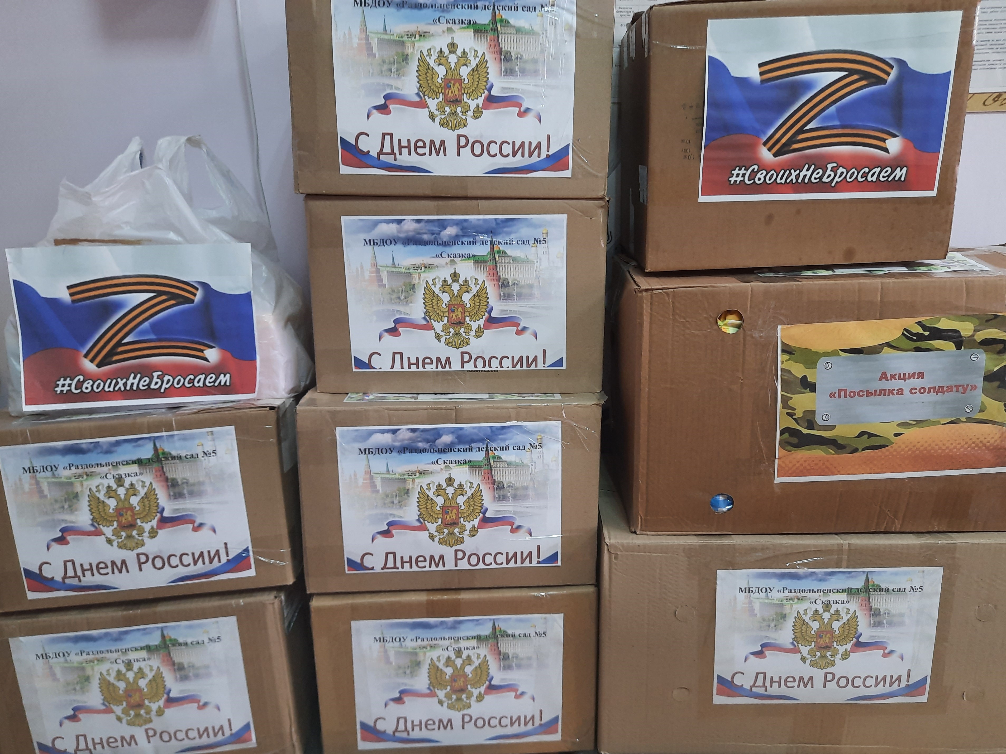 МБДОУ «Раздольненский детский сад №5 «Сказка» принял активное участие в сборе гуманитарной помощи для участников специальной военной операции в честь Дня России.