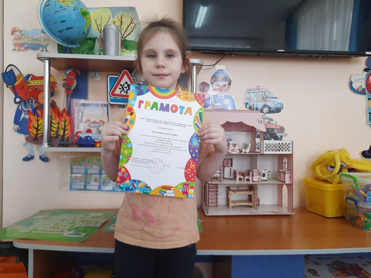 Кроме того, воспитанники ДОУ, не только изучают правила безопасности, но и творчески выражают свои знания. Дети приняли участие в муниципальном этапе Республиканского конкурса детского творчества "Дорога глазами детей".