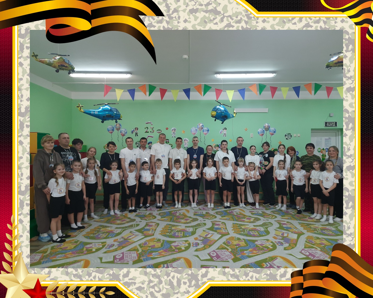 В завершение праздника девочки группы трогательно поздравили будущих защитников стихами. По итогам всех испытаний, конечно же, победила дружба! Все участники получили почетные медали за мужество, ловкость и сплоченность.