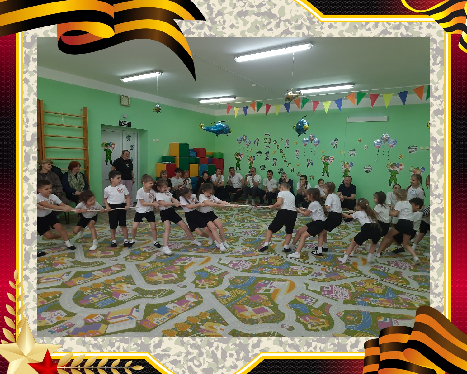 Кульминацией праздника стало традиционное перетягивание каната. Сначала мерились силами дети, а затем в «бой» вступили тяжеловесы — наши папы. Зал буквально содрогался от поддержки болельщиков!