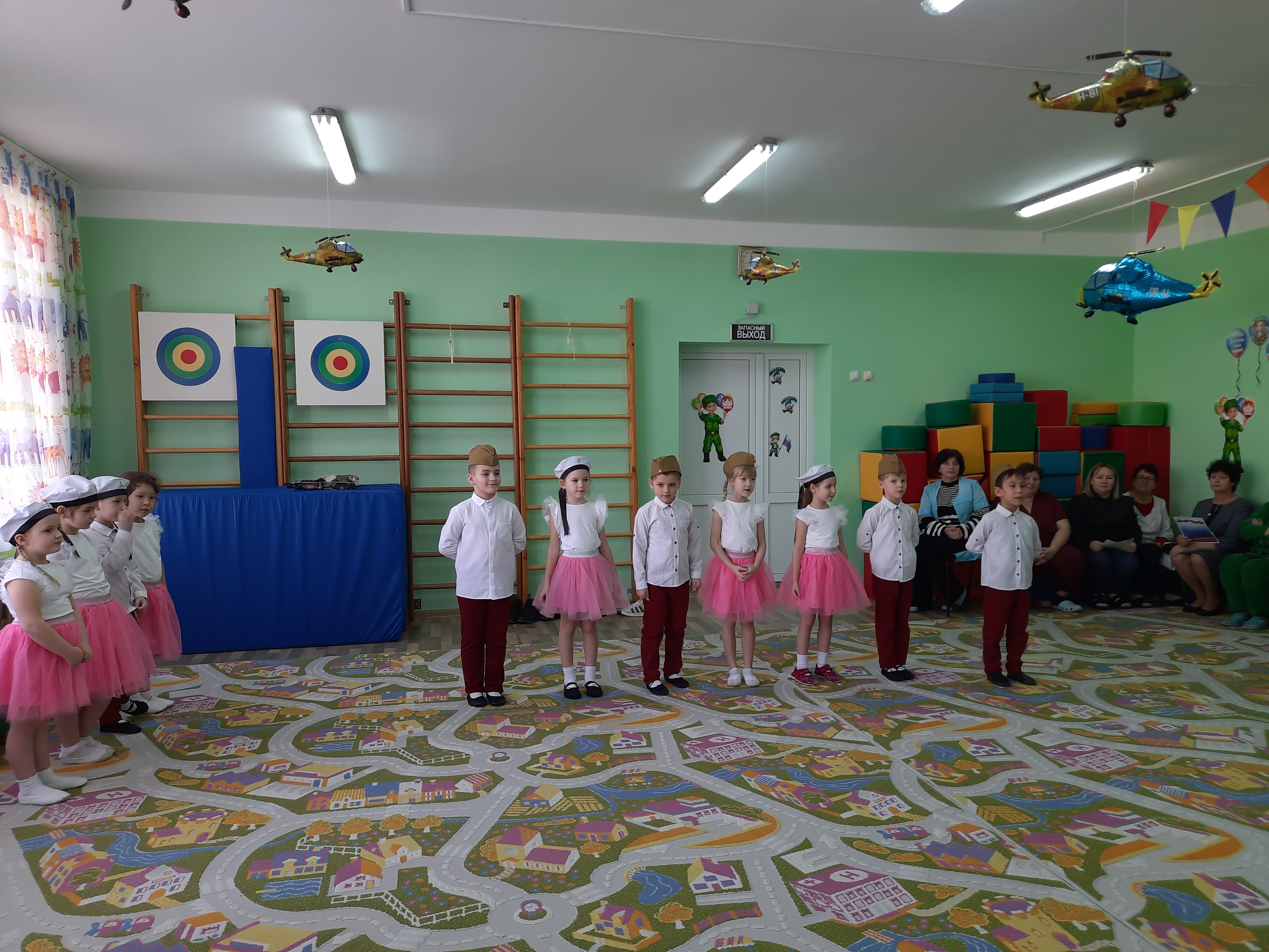 - выступление детей — прочтение стихов и исполнение композиции с флажками «Солдатом тоже стану я», в которой ребята трогательно и торжественно выразили уважение к защитникам;
