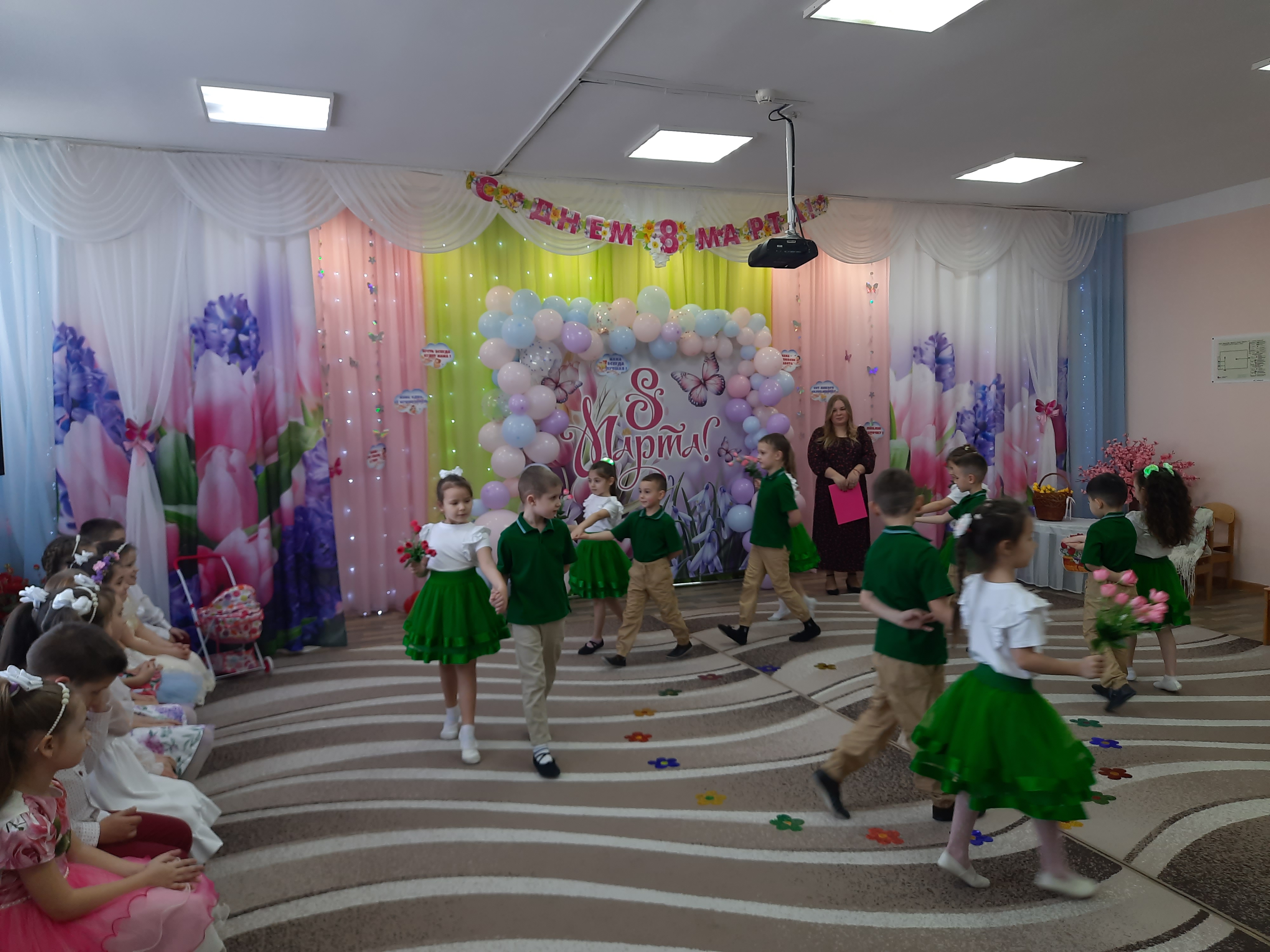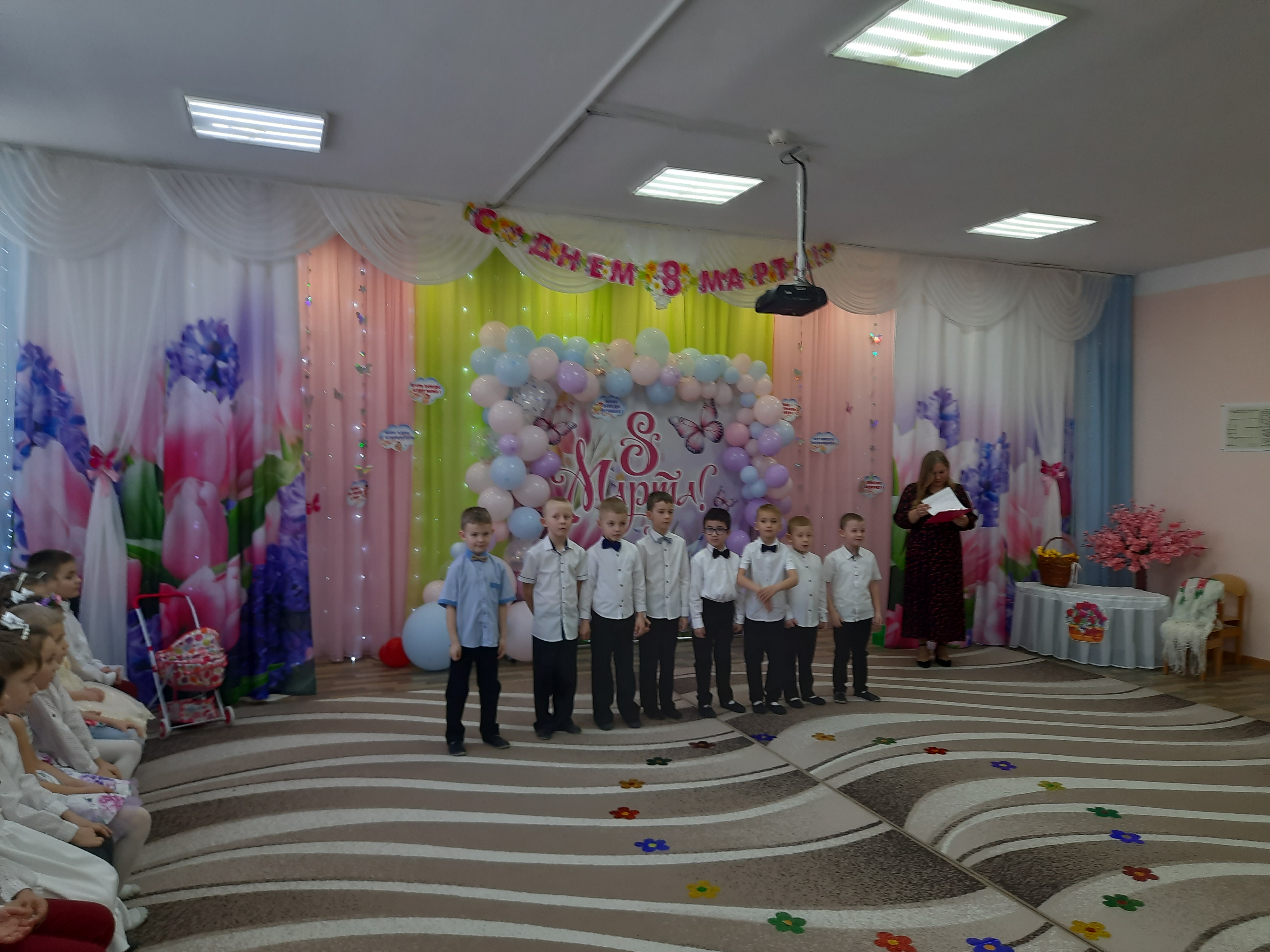 Накануне Международного женского дня в музыкальном зале нашего детского сада состоялось особенное событие. Воспитанники подготовили праздничный концерт, посвященный тем, кто ежедневно окружает их заботой, теплом и вниманием — сотрудникам ДОУ.